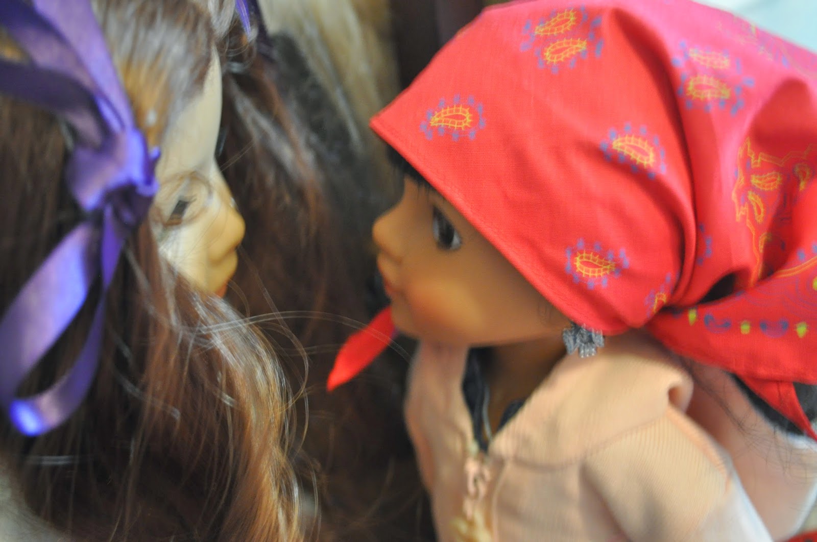 As soon as she entered town, Annabelle ran into a poor little girl who was dressed in rags, except for the nice, tidy red bandana she wore upon her head, with only her bangs peeking out.
